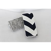 Reversible Car Seat or Stroller Strap Covers - Navy Chevron with Grey Minky backing - Ready to Ship!