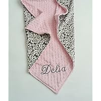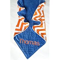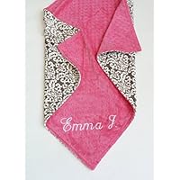 Personalize Double Minky Baby Blanket - Sports Print Minky Front, You Choose SOLID COLOR minky