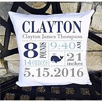 Birth Announcement Pillow for Baby Boys Nautical Whale Nursery - Includes Personalized Pillowcase and Pillow Insert