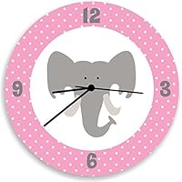 Elephant head WALL CLOCK - pink and white polka dots Bedroom Baby Nursery Decor