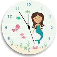 Mermaid curly haired girl - Kids Wall Clock, Children Room Decor Mermaid WALL CLOCK for Girls Bedroom
