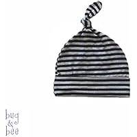 Baby Knotted Hat, Striped Infant Hat, Top Knot Baby Beanie- Black and Grey