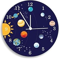 Solar System Wooden Wall Clock, space Bedroom Wall Clock, Nursery Room Decor