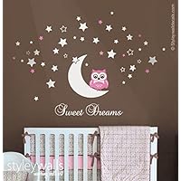 Owl Wall Decal, Goodnight Sweet Dreams Lettering Wall Decal Sticker, Owl Moon and Stars Wall Decal for Nursery Kids Baby Room