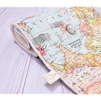 Welcome to the World Baby and Kids Blanket - a handmade designer Blanket with a world map fabric on one side, and soft cream minky on the back.