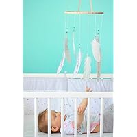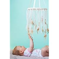 Dreamcatcher Crib Mobile Baby DreamCatcher Mobile Bohemian Nursery Decoration Diameter 9.2 "/23 cm Ivory and Pale Pink Lace, Beige/Yellow Beads and beige/brownFeathers