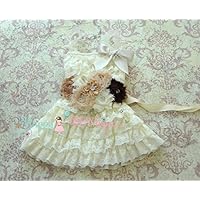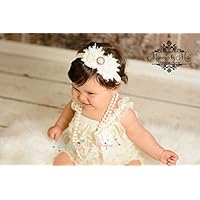 2pcs Baby Girl Vintage Ivory Petti Lace Romper Set w Extra Headband, Baby Girl Ivory Romper, Baby Baptism Outfit