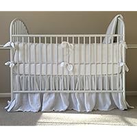 Neutral White Baby Bedding finished with leaf shaped ties, Handmade Natural Linen Crib Bedding Set, White Baby Bedding Set, FREE SHIPPING