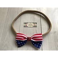 Baby Headband, 2.5" 4th of July Bow On Thin Nylon Headband, 4th of July Headband