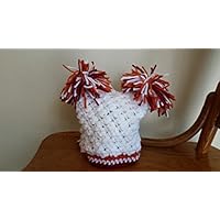 Newborn hand crocheted double pom pom hat in Virginia Tech College team colors of maroon and orange