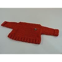 Long Sleeve Hand Knit Orange Cardigan, Girl Coats, Jacket, Wood Buttons