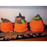 Orange Pumpkin, Set of 3 Toys, Nursery Decor, Cotton Yarn