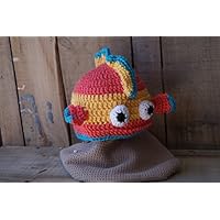 Monster Bib, crochet baby bib, teal and orange