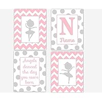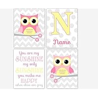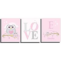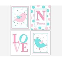 Girl Nursery Wall Art Pink Aqua Teal Birds Polka Dots LOVE Personalize Monogram Name Baby Nursery Decor SET OF 4 UNFRAMED PRINTS