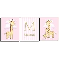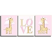 Baby Girls Nursery Decor Pictures Pink Tan Brown Prints Giraffe Wall Art New Born Baby Shower Gift 8 x 10 or 11 x 14 inches (Set of 3)