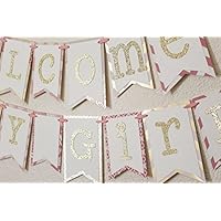 Pink and Gold Baby Shower Banner | Welcome Baby Girl