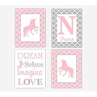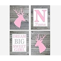 Baby Girl Nursery Art Deer Head Antler Decor Pink Gray Personalize Girl Room Prints Dream Big Rustic Baby Nursery Silhouette Nursery Art SET OF 4 UNFRAMED PRINTS