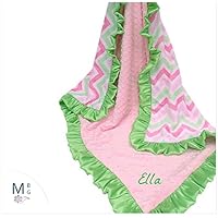 MinkyBabyGifts Personalized Pink and Green Chevron Minky Baby Blanket