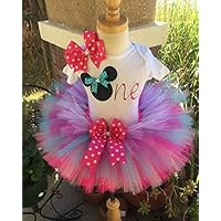 Pink and Aqua 1st First Birthday Minnie Mouse Disney "ONE" Tutu Outfit Set Dress Shirt - Can be modified to suit ANY AGE