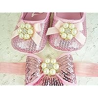 Baby Pink Sequin Shoes, USA, Infant Footwear, Girl's Pre Walkers, 1st Birthday, Kids Fashions. Photo Prop, Baby Shower Gift.