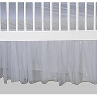 White Sparkle Beads Tullu Ruffled Lined Crib Skirt 16 Inch Drop 3 Sided