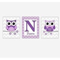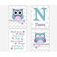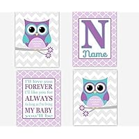 Owl Girl Nursery Wall Art Purple Lavender Teal Love You Forever Personalize Name Art Monogram Owl Wall Decor Baby Nursery Decor Owl Wall Art SET OF 4 UNFRAMED PRINTS