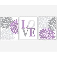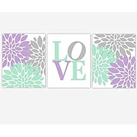 Lavender Mint Green Gray Purple Flower Dahlia Mums Floral Prints Girl Bedroom Art Baby Girl Nursery Decor LOVE SET OF 3 UNFRAMED PRINTS
