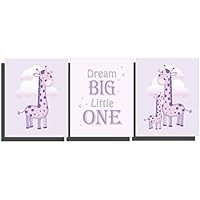Baby Girl's Purple Lavender Nursery Room Decor Baby Shower Gift Giraffe Theme Safari Animal Pictures Mauve Gray Nursery Wall Art Dream Big Little One 8 x 10 inch Set of 3 Prints