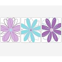 Baby Girl Nursery Wall Art Purple Lavender Teal Aqua Owls Flower Burst Dahlia Mums Modern Floral Bedroom Prints Baby Nursery Decor SET OF 4 UNFRAMED PRINTS