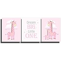 Baby Girl’s Pink Nursery Room Décor Giraffe Theme Wall Art Set of 3 Prints Safari Animal Pictures Baby Shower Gift (8 x 10 inch)