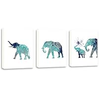 Baby Girl Nursery Wall Art Purple Lavender Aqua Teal Elephant Jungle Safari Zoo Animals Birds LOVE Flower Baby Nursery Decor SET OF 3 UNFRAMED PRINTS