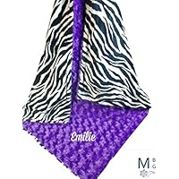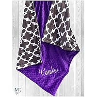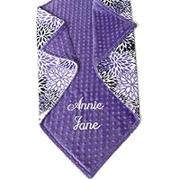 MinkyBabyGifts Personalized Purple and Gray Floral Minky Baby Blanket