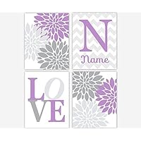 Baby Girl Nursery Wall Art Lavender Gray Purple Personalized Art Flower Burst Girl Room Floral Wall Decor Baby Girl Room Flower Wall Decor Prints LOVE Dahlia Mums SET OF 4 UNFRAMED PRINTS