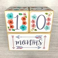 Baby Age Blocks Milestone Blocks Solid Wood Girl Flowers and Arrows by Stick'em Up Baby (5 inch)