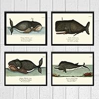 Whale Art Print Set of 4 Antique Beautiful Ocean Sea Marine Nature Colored Natural Science Chart Illustration Home Wall Decor Unframed GNT