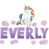 Personalized Unicorn with Flowers Removable Wall Decal Set with Name