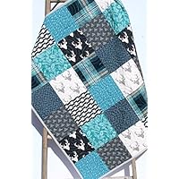 Modern Boy Quilt Modern Baby Bedding Woodland Deer Arrows Navy Blue Teal Gray Buck Plaid Handmade Crib or Toddler Size