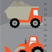 Personalized Nursery Height Chart Orange Construction Trucks Boys Bedroom Wall Art