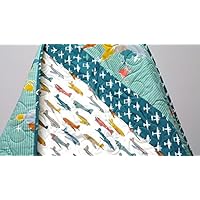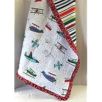 Baby Boys Vintage Airplanes Stripes Quilt Ready to Ship Handmade Great Shower Gift