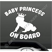 Baby Princess On Board Bumper Sticker Vinyl Decal - Princess Tiara Sticker Self Adhesive Vinyl Car Sticker Van Truck SUV Sticker Window Decal Sign