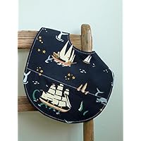 Reversible Baby Feeding Bib, Sailboats and Sea Monsters