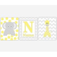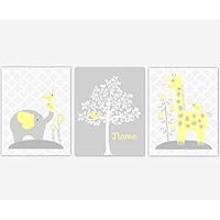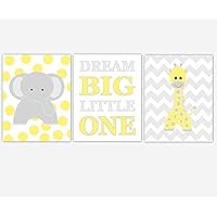 Baby Nursery Art Yellow Gray Prints Elephant Giraffe Dream Big Jungle Safari Zoo Animals Boy Girl Baby Nursery Decor SET OF 3 UNFRAMED PRINTS