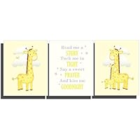 Giraffe Yellow Nursery Prints Safari Animal Wall Art Children’s Bedroom Décor Baby Shower Gift Girl Boy Pictures Tell Me a Story Set of 3 Prints
