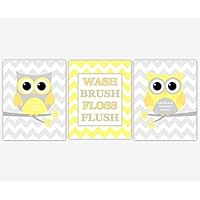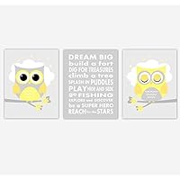 Baby Nursery Art Yellow Gray Owls Dream Big Gender Neutral Girl Boy Nursery Decor SET OF 3 UNFRAMED PRINTS