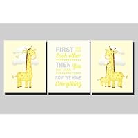 Yellow Nursery Wall Art Baby Girl Boy Bedroom Decor Gender Neutral Baby Shower Gift Giraffe Prints Safari Animal Pictures Dream Big Little One 8 x 10 inch Set of 3 Prints