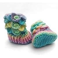 Green Blue Pink & Yellow Crochet Newborn Baby Shoes