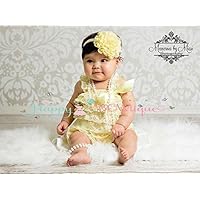 2pcs Baby Yellow Petti Lace Romper, Baby Girl Pale Yellow Lace Romper Set