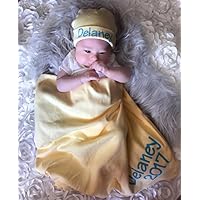 Personalized Baby Unisex Yellow Blanket and Hat Set