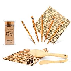 - A Easy-to-Use Starter Kit: This do-it-yourself sushi making kit includes 2 rolling mats, 1 rice spreader, 1 rice paddle, and 5 pairs of chopsticks. All are easy to easy for sushi beginners and first-timers