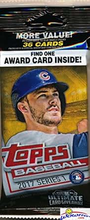 2017 Topps Baseball Series 1 Celebrates the Greatest Moments, Biggest Stars of Today & Newly Debuting Rookies! Collect all 350 Cards in Series 1 including all-New Inserts, Autographs,1 of 1 Cut Signatures & Relics! Look for Special Retail Exclusive Awards Inserts, Parallel & Autographs! Look for Cards, Parallels, Relics & Rare Autographs of MLB Legends Sandy Koufax, Cal Ripken, Ken Griffey Jr & Many More Plus Current Superstars Mike Trout, Bryce Harper, Ichiro & More! Look for Sequentially Numbered Parallels including 1/1 Platinum & Printing Plates! Collect Inserts of Topps Salute, Bowman Then & Now, 1987 Topps Baseball & More! Look for Cubs World Champions Relic & Autographed Relics including Kris Bryant & Kyle Schwarber! This Product is Absolutely Loaded! Good Luck with your Pulls!